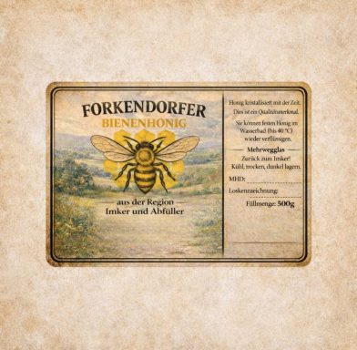 Für dieses Projekt haben wir das Motiv grafisch aufbereitet, verfeinert und produktionsreif umgesetzt. Neben der Bildbearbeitung lag der Fokus auf einer harmonischen Gesamtgestaltung, klarer Lesbarkeit sowie der korrekten Integration aller Pflichtangaben für Honigetiketten. Das Ergebnis ist ein hochwertiger, regional geprägter Honigglas-Aufkleber mit traditionellem Charakter, der sowohl optisch als auch funktional überzeugt.
